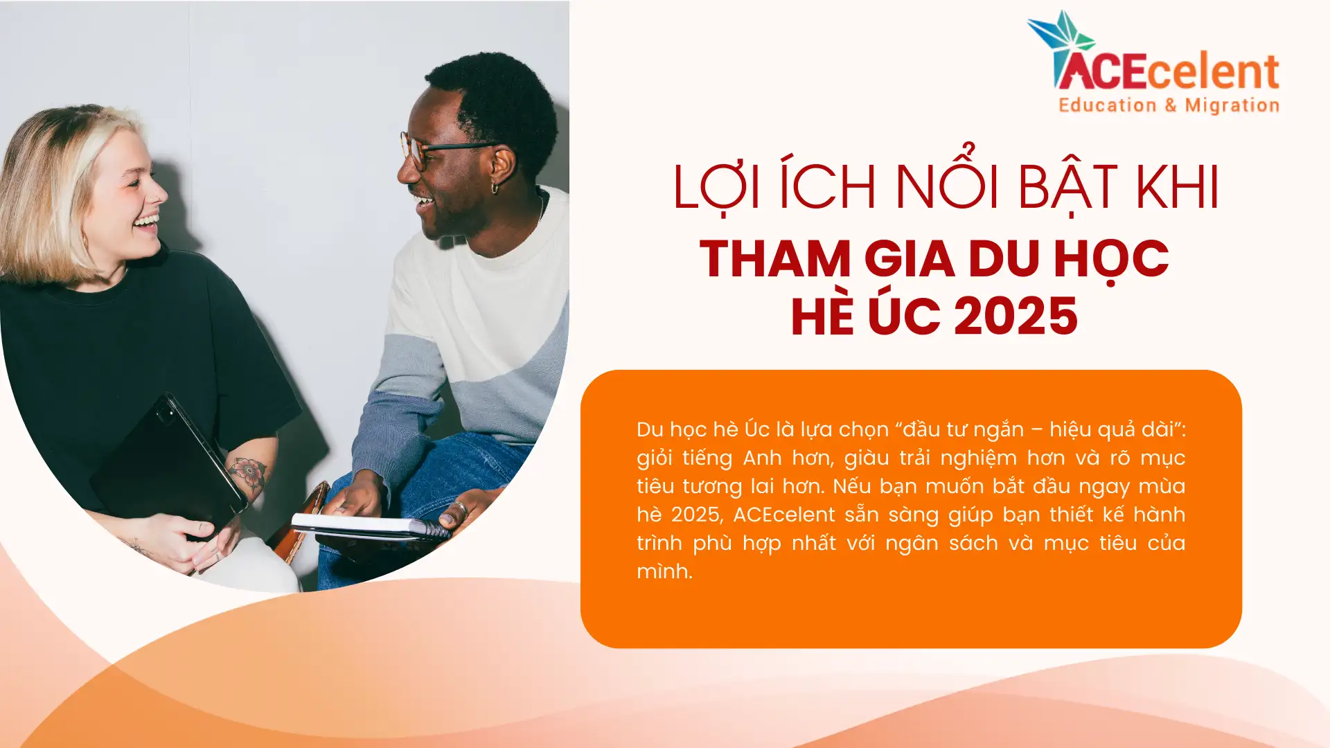 Du học hè Úc là lựa chọn “đầu tư ngắn – hiệu quả dài”: giỏi tiếng Anh hơn, giàu trải nghiệm hơn và rõ mục tiêu tương lai hơn. Nếu bạn muốn bắt đầu ngay mùa hè 2025, ACEcelent sẵn sàng giúp bạn thiết kế hành trình phù hợp nhất với ngân sách và mục tiêu của mình.